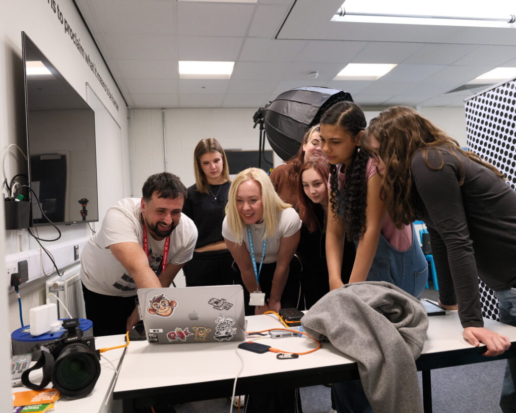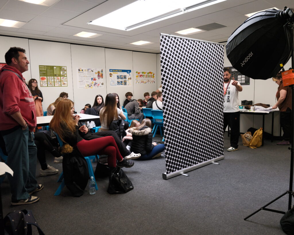 After the shutter clicked, students gathered around the monitors to review their shots, participating in the creative process of selecting the images that will represent them to the wider world.
