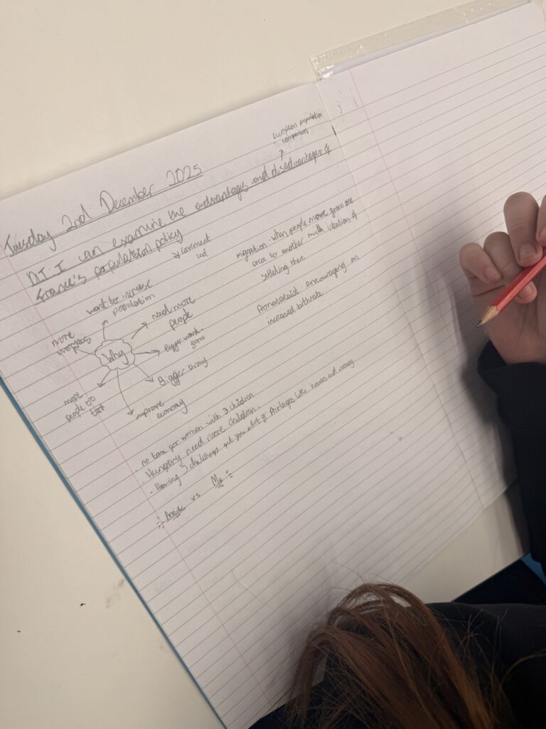 E30 Explorer have been grappling with the comparison of France and China’s population policies in Geography this week! Examining the strengths and weaknesses of arguments, and providing their personal opinion on the ethical and moral aspect of Governments regulating their populations. Super impressed with their grapple and craftsmanship displayed in their work and discussions!