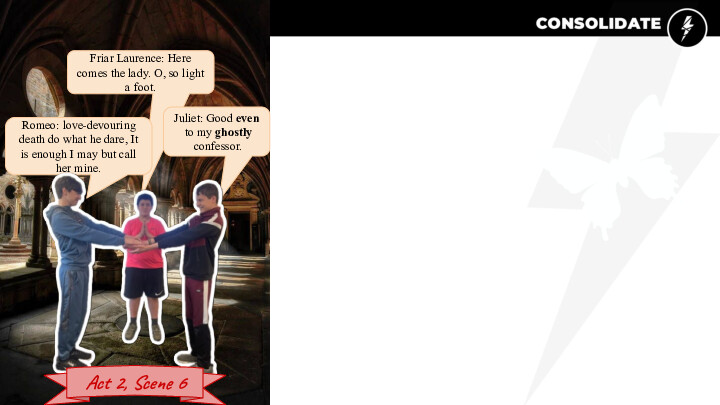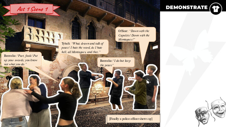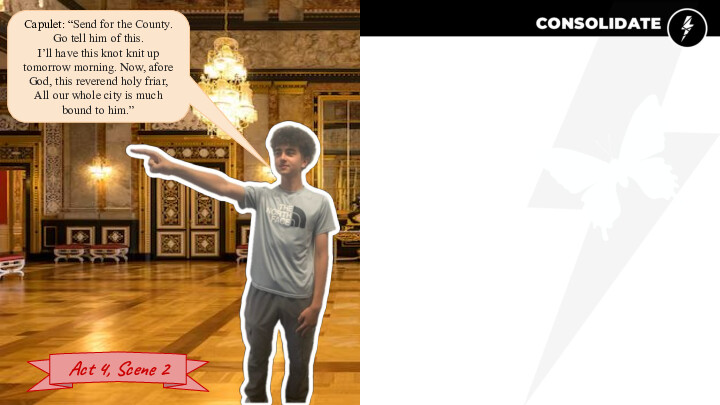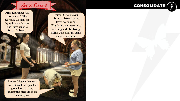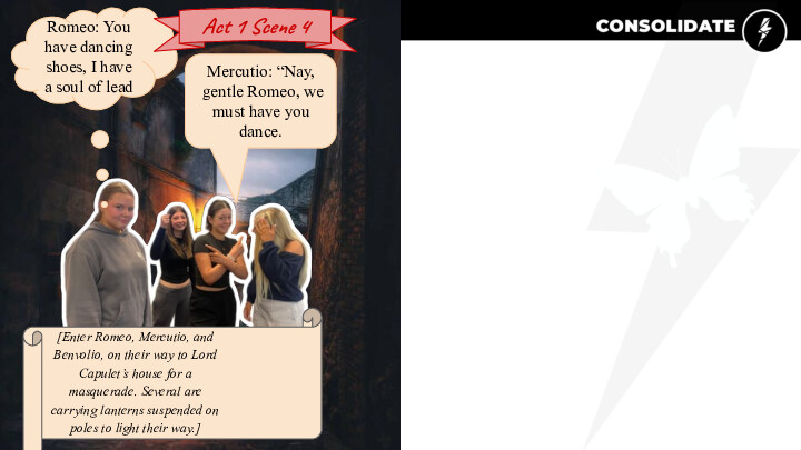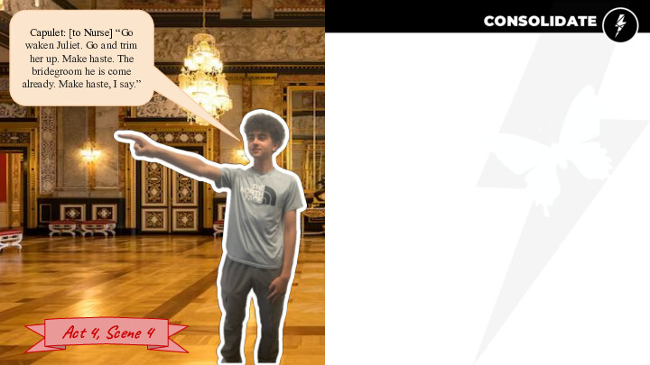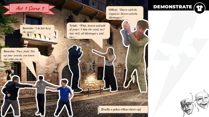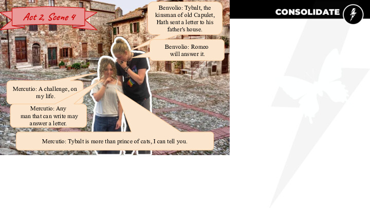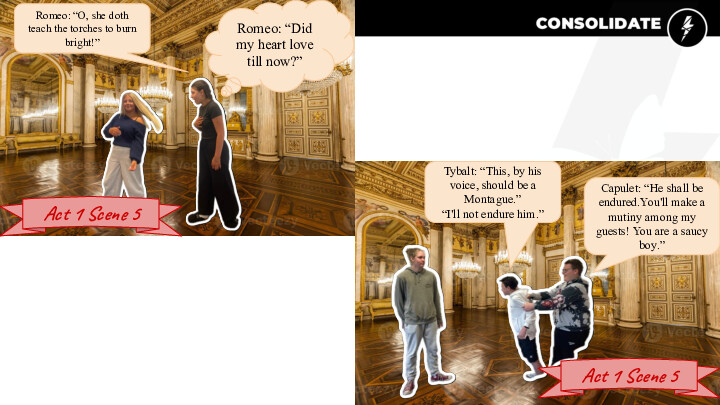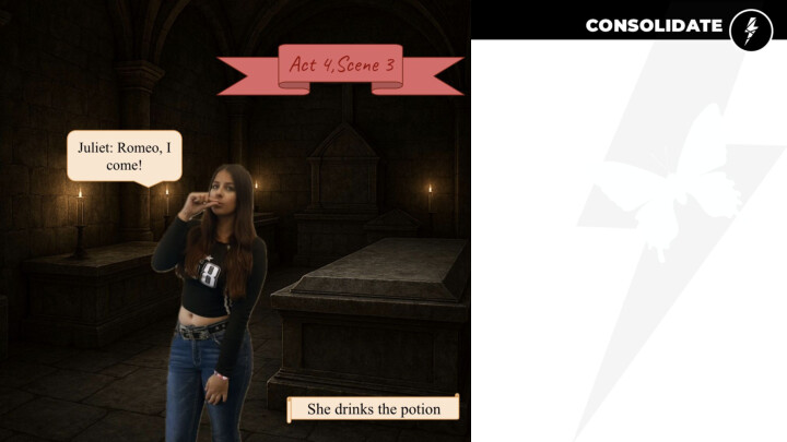 This drama strategy encourages pupils to focus on body language, symbolism, and staging to express meaning without words, helping them to embed key details of plot, character, and theme. By physically embodying the text, students deepen their understanding of Shakespeare’s language and ideas, while also improving recall and revision skills. Freezeframes are particularly valuable in the classroom because they make abstract ideas more concrete and allow students to explore different interpretations of characters and relationships in a collaborative, creative way.