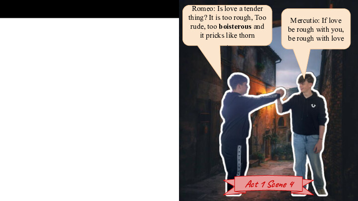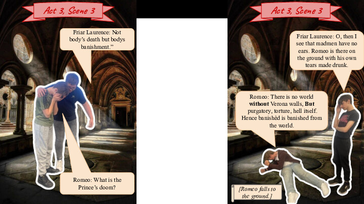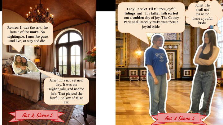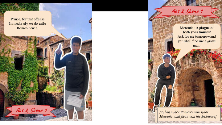 Tensions flare when Tybalt, Juliet’s cousin, kills Romeo’s friend Mercutio. In revenge, Romeo kills Tybalt and is banished from Verona by Prince Escalus. Juliet is devastated by both her cousin’s death and Romeo’s exile. The lovers spend one last night together before Romeo flees to Mantua, and Juliet’s parents, unaware of her marriage, arrange for her to wed Paris.