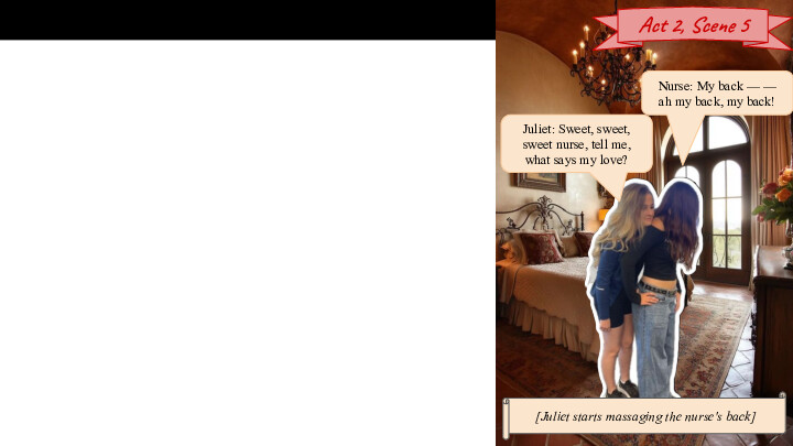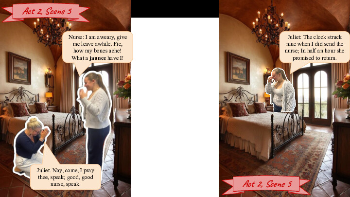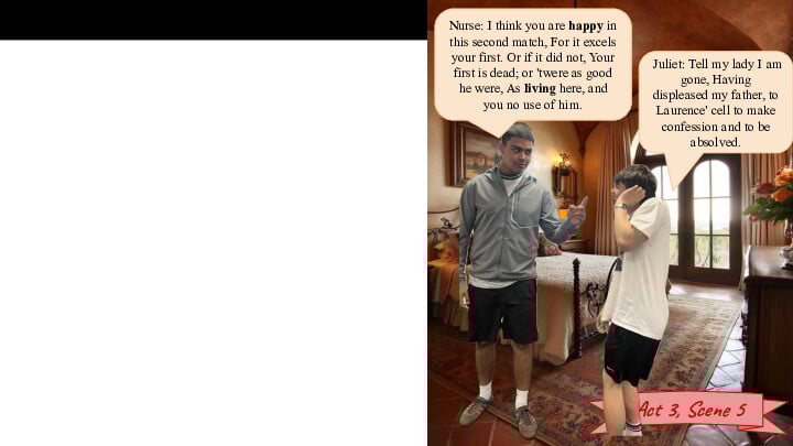 Romeo secretly visits Juliet’s garden that night, and the two confess their love in the famous balcony scene. With the help of Friar Laurence, who hopes their union might end the feud, they are secretly married the next day. Meanwhile, Juliet’s Nurse acts as the go-between for the young lovers.