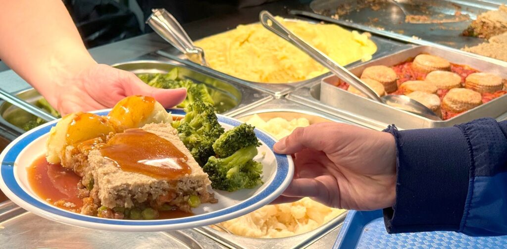 We have a community lunchtime where all students eat lunch together, this can be either a hot or cold meal provided by our kitchen or a student may bring a packed lunch from home. The menu options from the kitchen are on a 3-week rota and include a variety of hot and cold options.