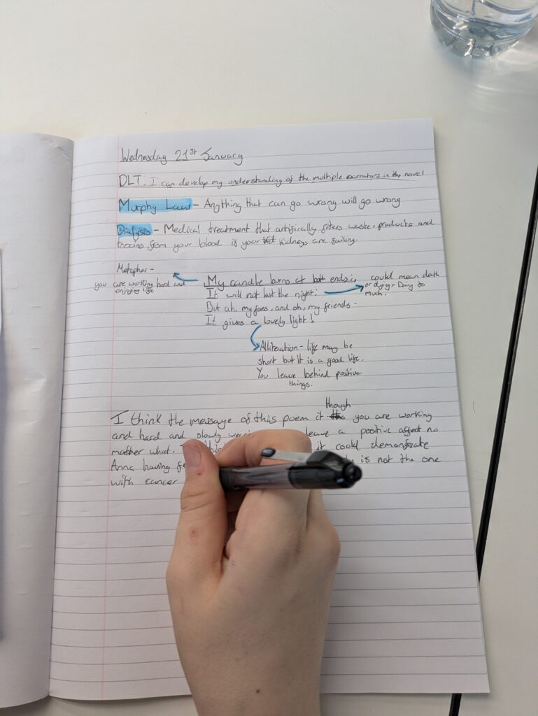 They are embedding their language analysis skills, developing their understanding of character arcs and complex plot lines whilst grappling with the big moral issues of our anchor text.